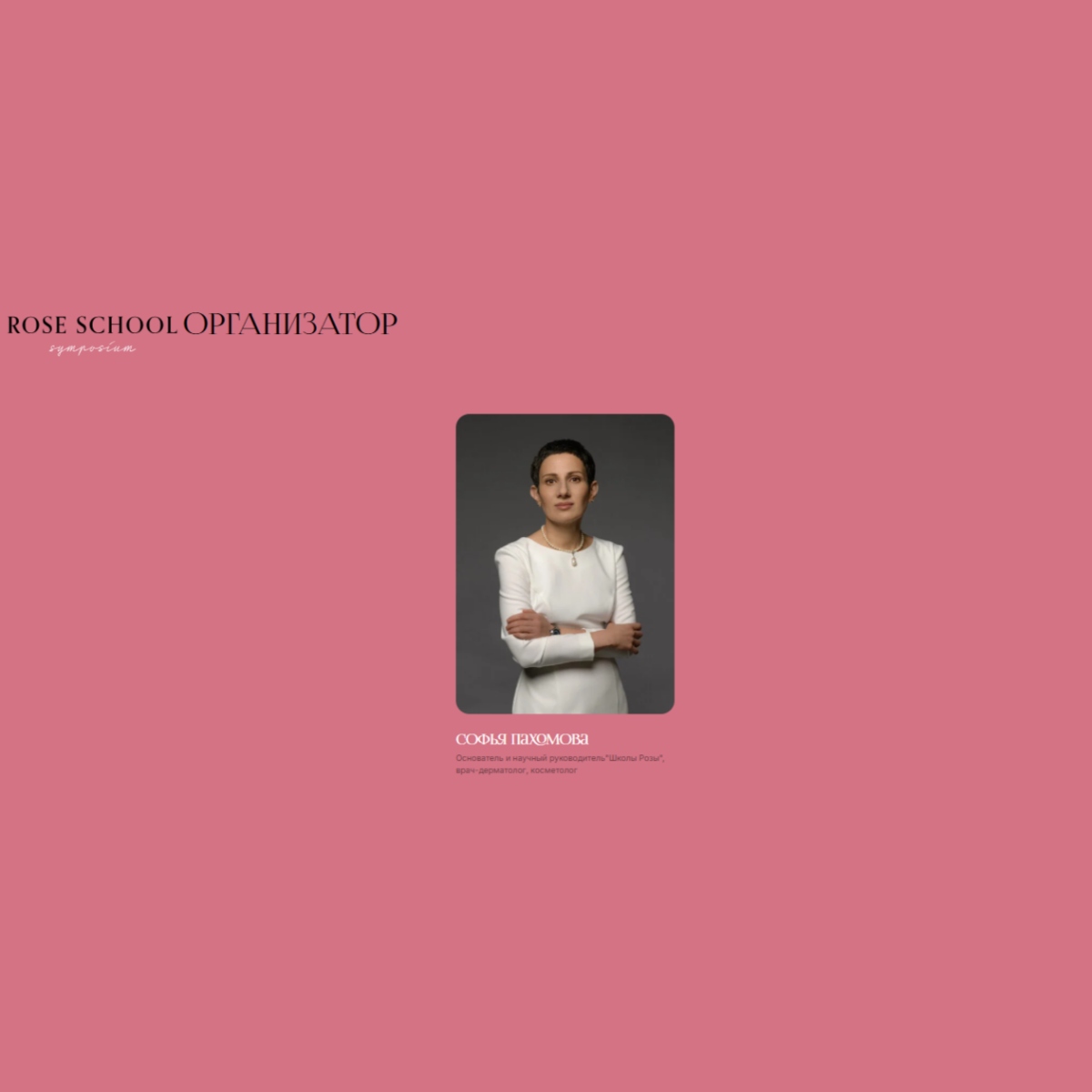 Организатор: Софья Пахомова (Основатель и научный руководитель"Школы Розы", врач-дерматолог, косметолог)
