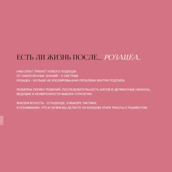 Есть ли жизнь после… розацеа? Rose School Symposium 2026 — профессиональный симпозиум для врачей-косметологов и дерматологов, посвященный современному системному подходу к розацеа. За последние годы подход к этому диагнозу кардинально изменился.