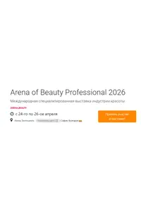 Arena of Beauty Professional - это единственная специализированная В2В выставка в Болгарии, посвященная профессиональной косметике, услугам и оборудованию для салонов красоты и SPA-центров. Основная цель выставки - помочь ведущим болгарским и международным производителям и импортерам расширить масштабы своего бизнеса и найти новых клиентов и дистрибьюторов.
